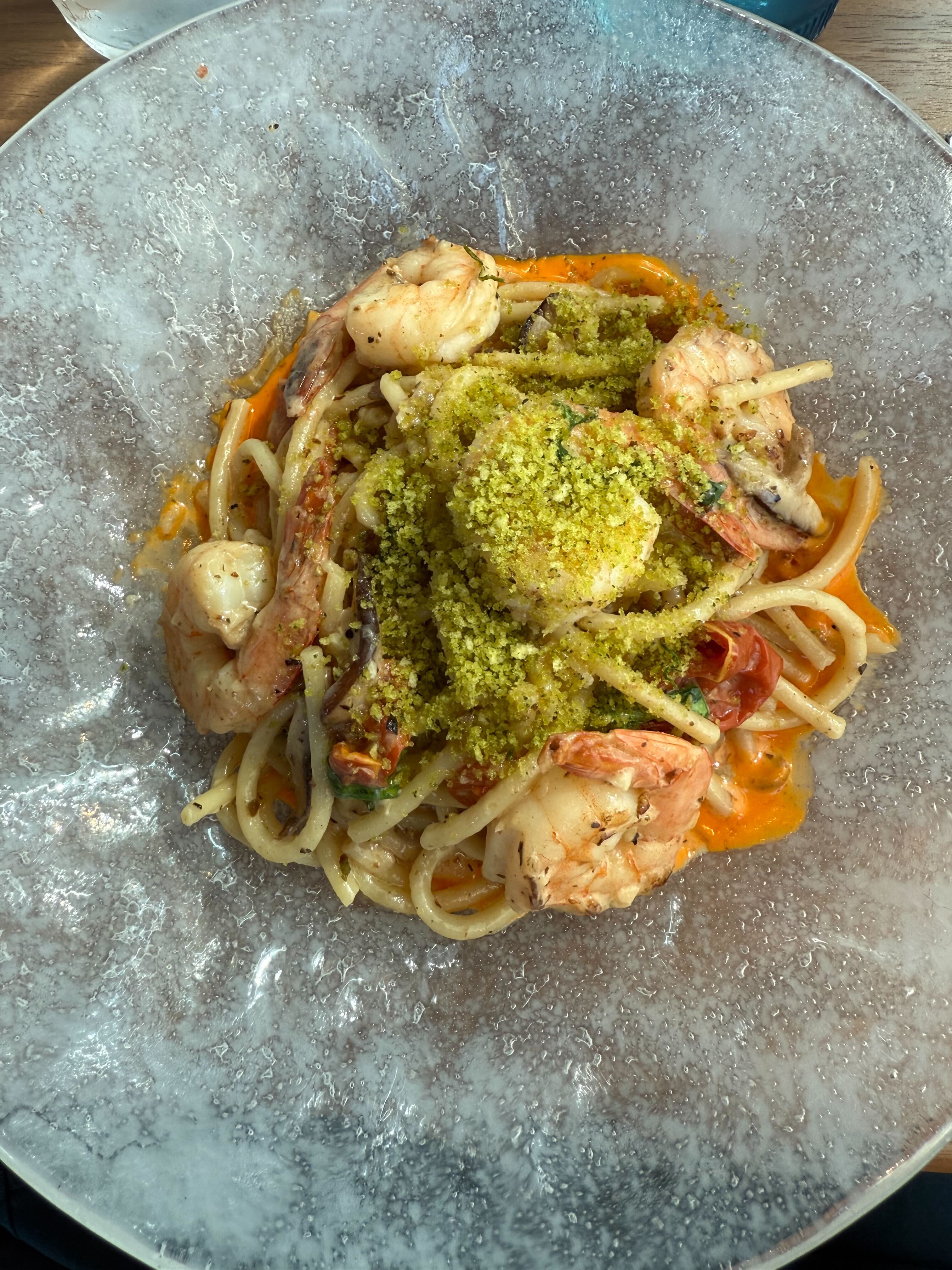 We could have spent hours chatting with our amazing server, Tyson. It was like they were an old friend as soon as we were seated. Their recommendations were both honest (not just the priciest items), and delicious. The Bucatini alla Adriata and the Northern Lights Martini were two stellar highlights of our meal, and both were ordered based on the recommendation of Tyson. They even went as far as going all the way to Super Nintendo World to get ranch for us, since Atlantic did not have any at the time. They were well versed in the menu and answered every question we had with detail. We had fun conversations unrelated to our meal too, like how our park day was going so far and what we liked or were looking forward too. When we asked for the manager to give Tyson a shout out, they were also very gracious and continued asking us about our experience. Each time I’ve been back, from the hosts to the servers to the leaders, everyone has done something a little extra to make sure my time at their restaurant is perfect. Overall the experiences have left nothing to be wanted, except of course another chance to dine at the Atlantic ASAP.